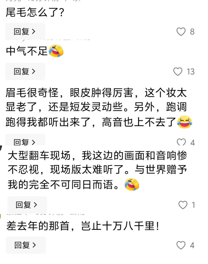 只是她这个妆造不知道造型师怎么想的,确实很适合这个季节,但感觉不适合舞台演出。网友都在说她跟相比,明显变老了很多,她已经五十多岁了,这很正常。