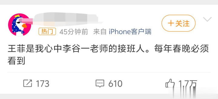 另外还有网友说希望王菲接了李谷一的班,每年都能看到她。